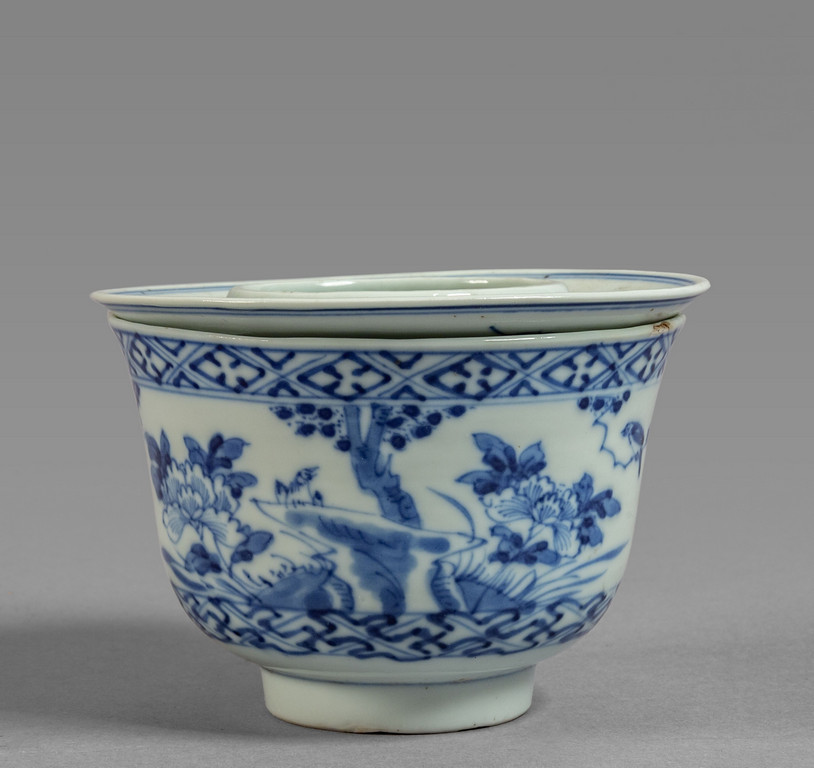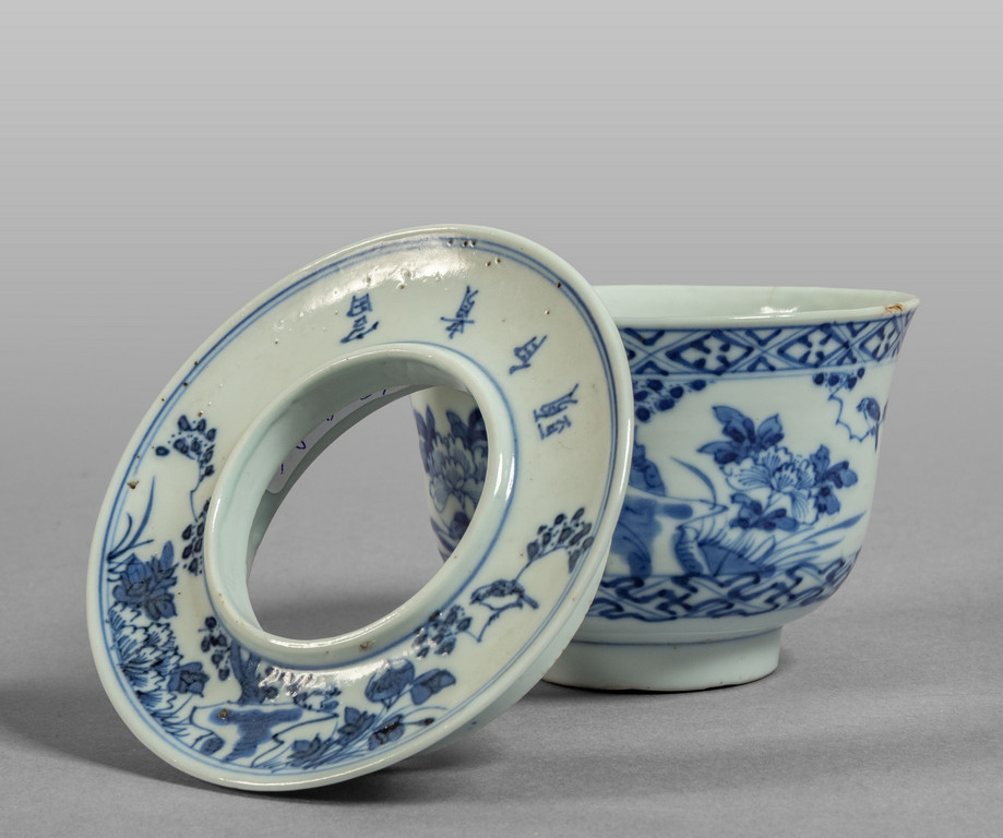 Ciotolina in porcellna bianca e blu marcata alla base sec.XVIII