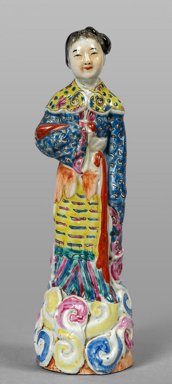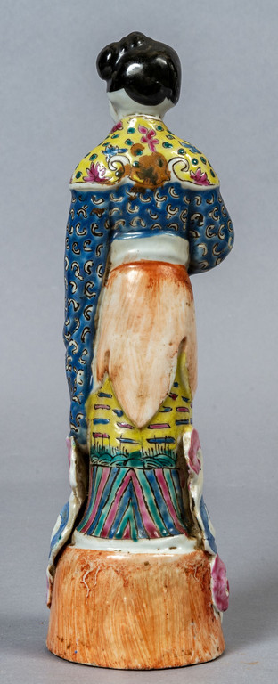 Figura di fanciulla in porcellana policroma marcata alla base Cina inizi sec.XX