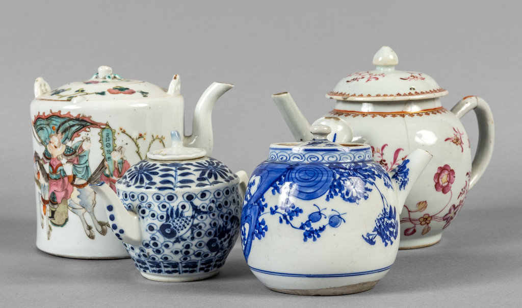 Quattro theiere in porcellana di varie forme e misure Cina sec.XIX