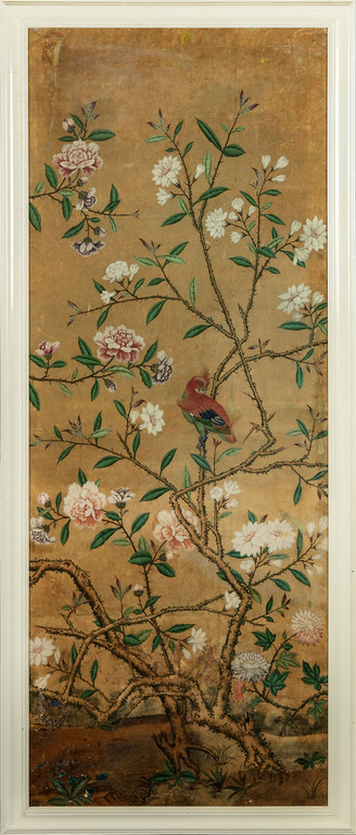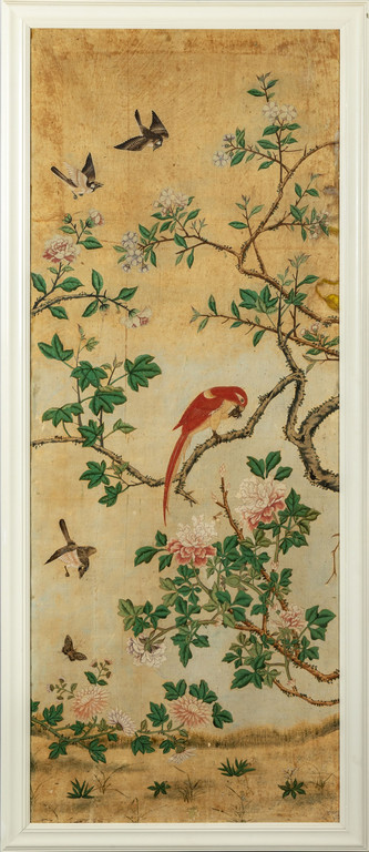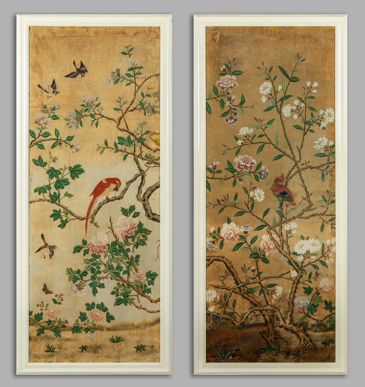 Coppia di pannelli su carta decorati a motivi di fiori e uccelli Cina sec.XVIII