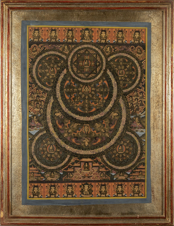 Precedente Lotto 0509 Successivo Aste Boetto - Via Mura dello Zerbino 10R, 16122 Genova Asta di Antiquariato e Arte Orientale Asta di Antiquariato e Arte Orientale mercoledì 21 giugno 2023 ore 10:00 (UTC +01:00) DIPINTO Tanka dipinto a sette anelli Tibet sec.XXcm. 72x52