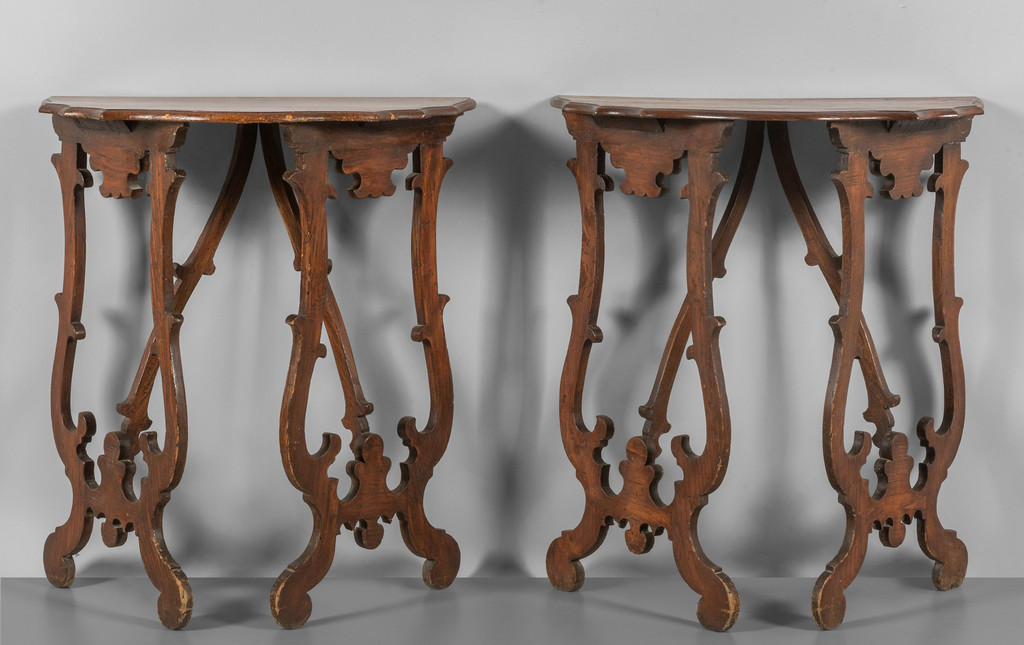 Precedente Lotto 0529 Successivo Aste Boetto - Via Mura dello Zerbino 10R, 16122 Genova Asta di Antiquariato e Arte Orientale Asta di Antiquariato e Arte Orientale mercoledì 21 giugno 2023 ore 10:00 (UTC +01:00) MOBILE Coppia di consoline a fratina in nocecm. 68x34 h. 79