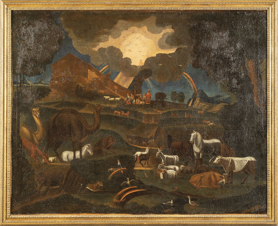 Scuola fiamminga sec.XVII 'La discesa degli animali dall'arca' olio