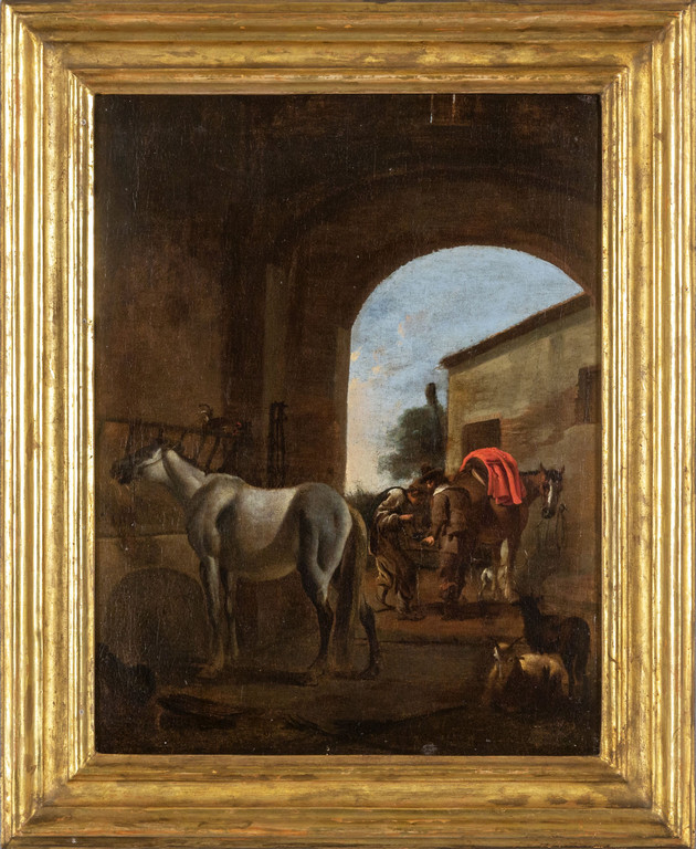 Scuola italiana sec.XVIII 'Vita nella stalla' olio