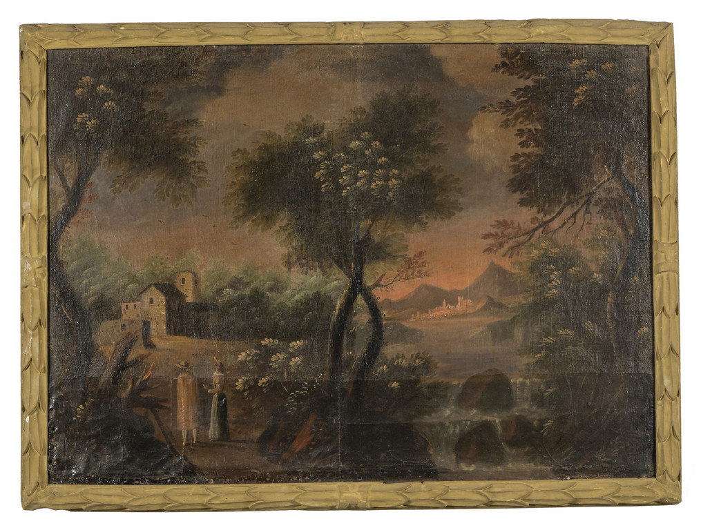 Precedente Lotto 0586 Successivo Aste Boetto - Via Mura dello Zerbino 10R, 16122 Genova Asta di Antiquariato e Arte Orientale Asta di Antiquariato e Arte Orientale mercoledì 21 giugno 2023 ore 10:00 (UTC +01:00) DIPINTO Scuola piemontese sec.XVIII 'Paesaggio con viandanti' olio