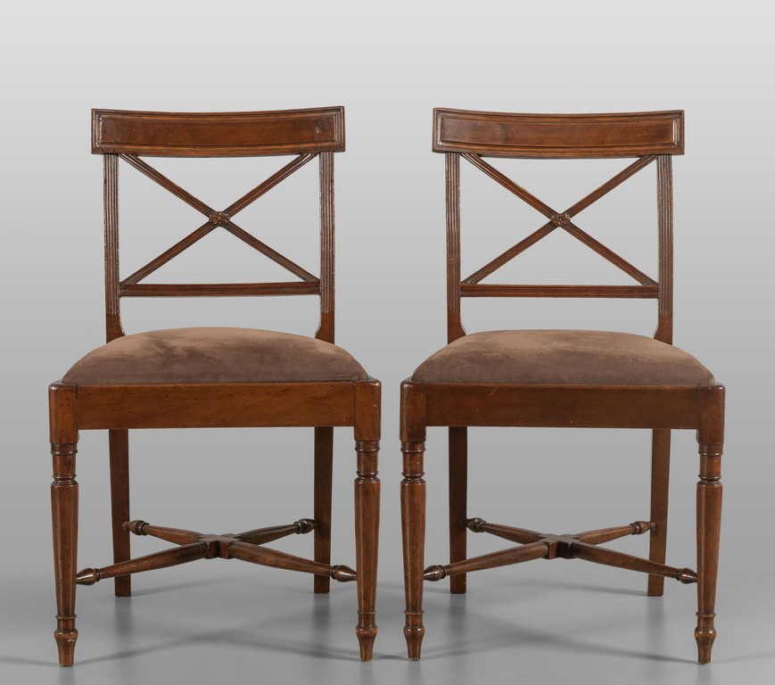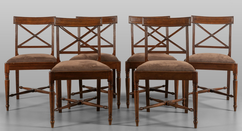 Sei sedie in mogano con schienale intagliato Inghilterra sec.XIX