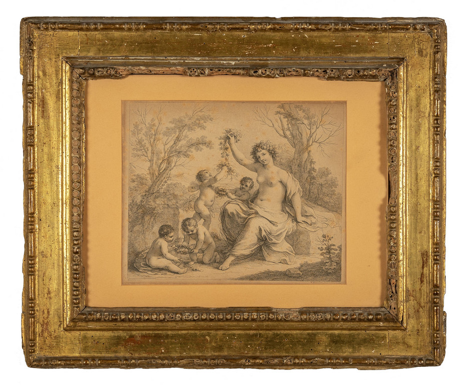 F.Bartolozzi incise stampa dal Guercino d.ta Londra 1767 cornice a cassetta in legno intagliato e dorato sec.XVII (difetti)