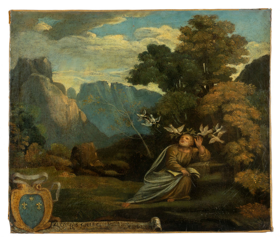 Scuola italiana sec.XVIII 'Santo con colombe' olio