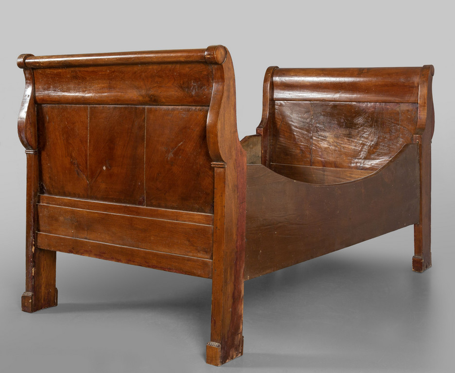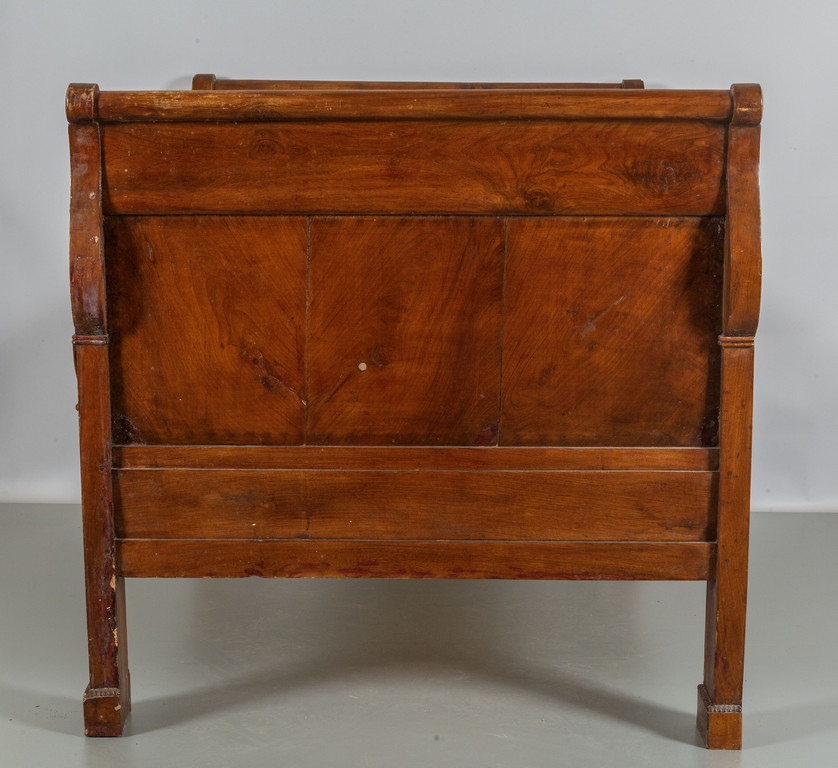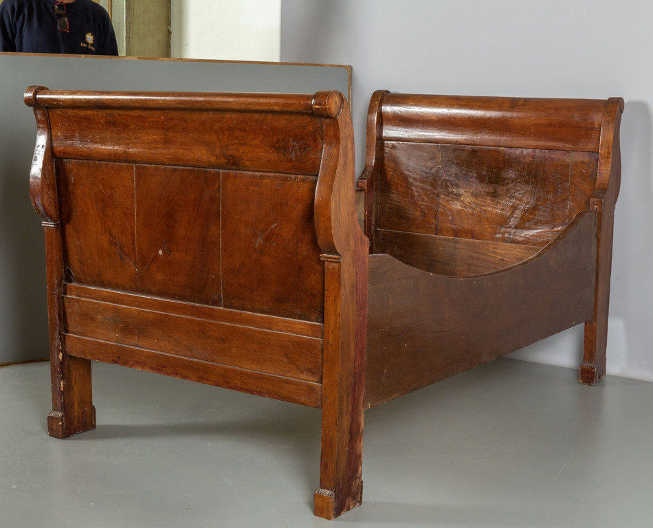 Letto Impero a barca lastronato in mogano Francia sec.XIX