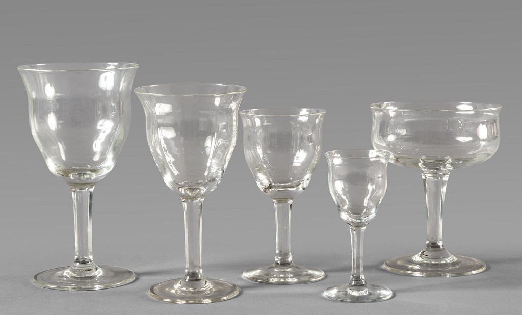 Servizio di bicchieri in cristallo per dodici 4 misure e coppe da champagne
