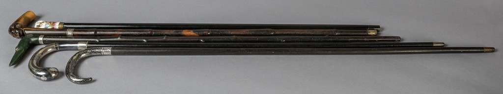 Precedente Lotto 0658 Successivo Aste Boetto - Via Mura dello Zerbino 10R, 16122 Genova Asta di Antiquariato e Arte Orientale Asta di Antiquariato e Arte Orientale mercoledì 21 giugno 2023 ore 10:00 (UTC +01:00) OGGETTISTICA Cinque bastoni da passeggio in materiali vari