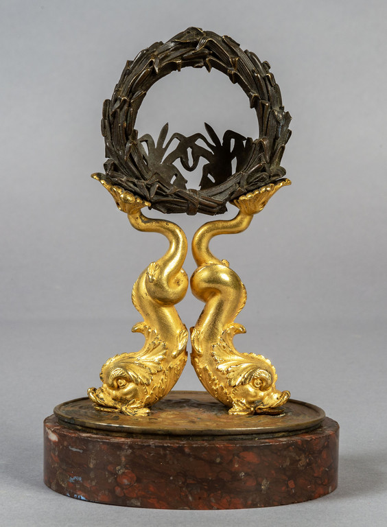 Portaorologio in bronzo brunito e dorato base a forma di tritoni sec.XIX