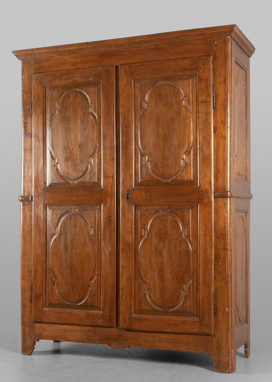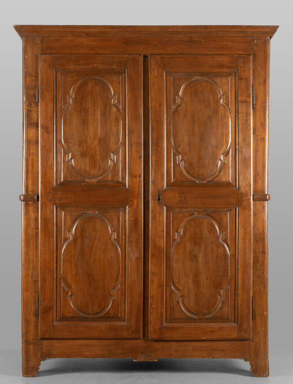 Armadio Luigi XIV in noce intagliato a due ante Piemonte I metà sec.XVIII
