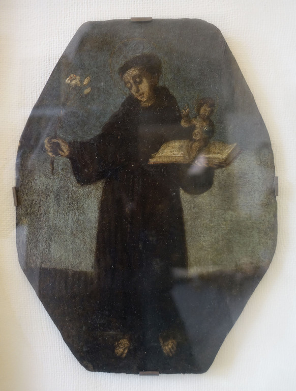 'Sant'Antonio con il Bambino' olio di forma ottagonale sec.XVIII
