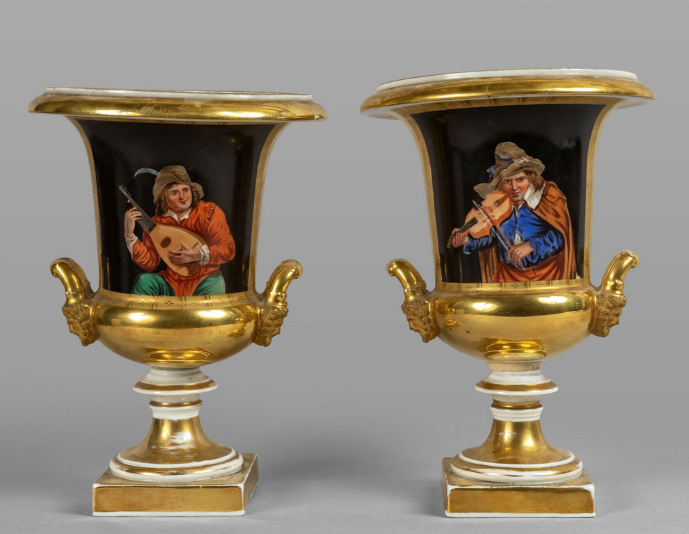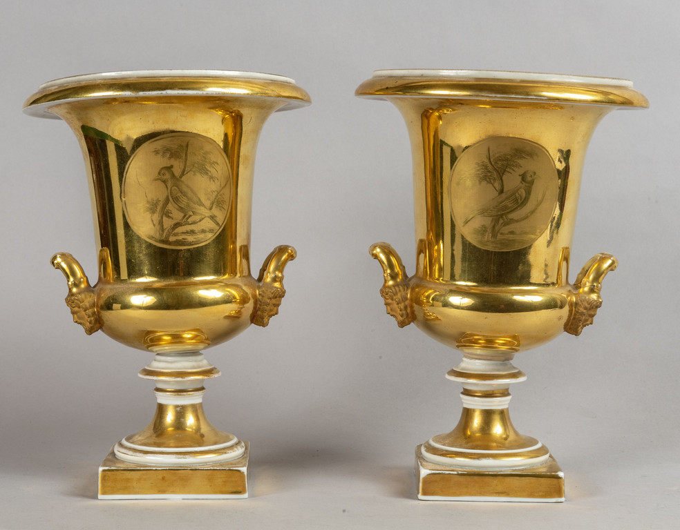 Coppia di vasi Impero in porcellana policroma ed oro sec.XIX