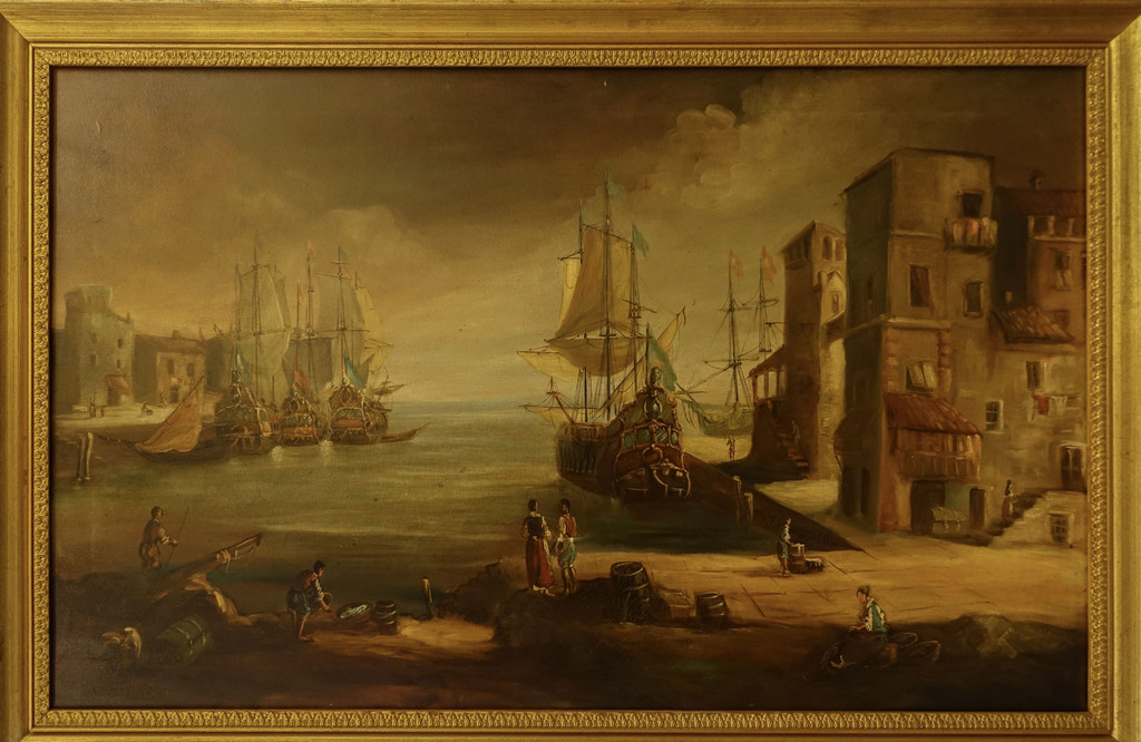 Precedente Lotto 0762 Successivo Aste Boetto - Via Mura dello Zerbino 10R, 16122 Genova Asta di Antiquariato e Arte Orientale Asta di Antiquariato e Arte Orientale mercoledì 21 giugno 2023 ore 10:00 (UTC +01:00) DIPINTO 'Veduta di porto con galeoni' oliocm. 120x70