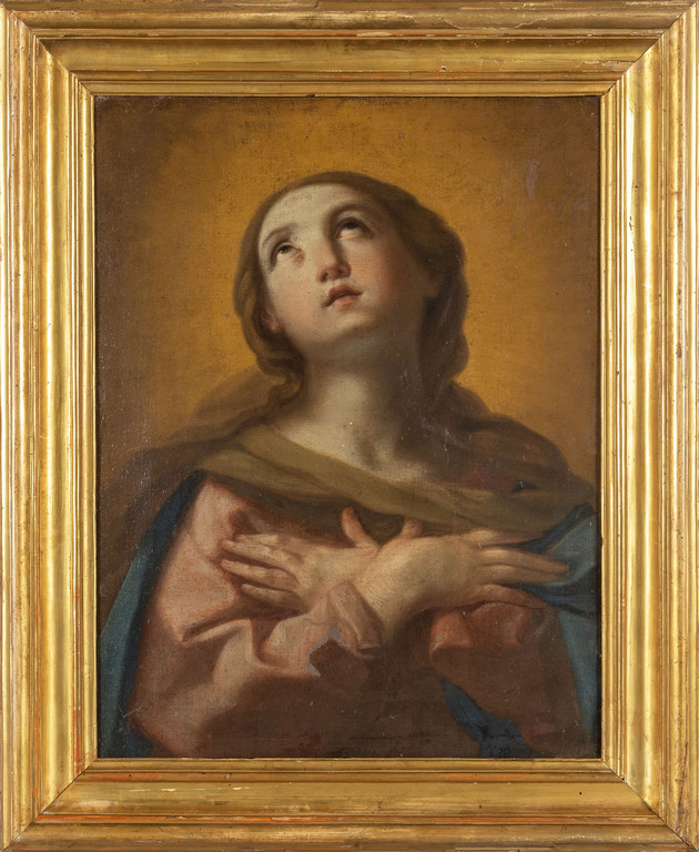 Scuola veneta sec.XVIII 'Santa in estasi' olio cornice coeva in legno dorato