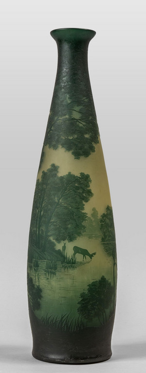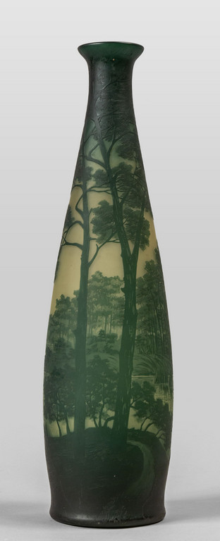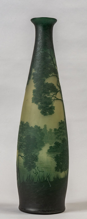 Vaso Liberty in vetro lavorato all'acido nei toni del verde f.to VSL Francia inizi sec.XX