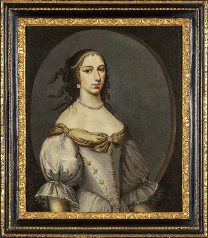 Scuola italiana sec.XVIII 'Ritratto di ragazza con abito azzurro' olio cornice in legno intagliato e laccato nera e oro