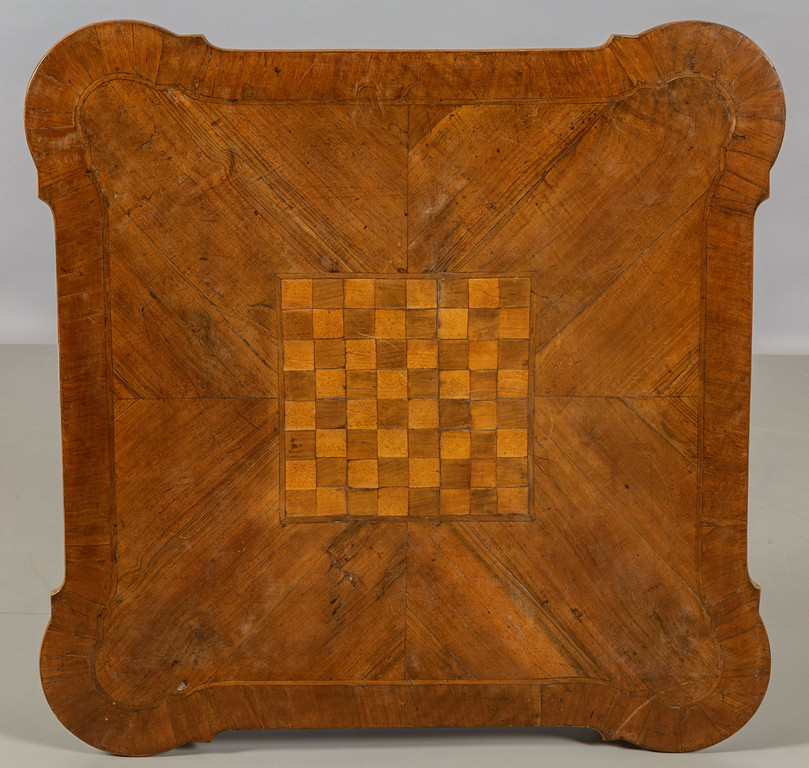 Tavolo da gioco Luigi XIV piano lastronato con al centro scacchiera Emilia sec.XVIII