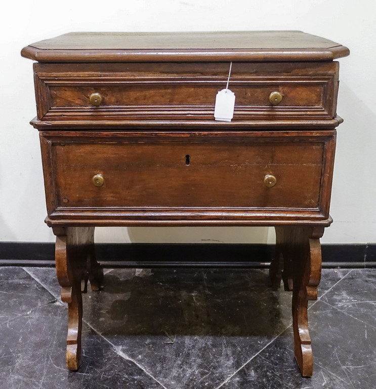 Mobiletto da centro in noce a due cassetti di gusto rinascimentale