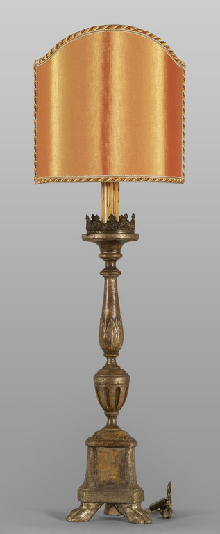Candeliere in legno intagliato e dorato adattato a lampada fine sec.XVIII