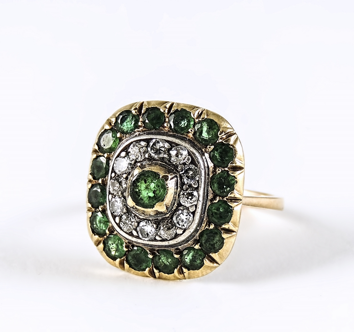 ANELLO IN ORO BIANCO, DIAMANTI E SMERALDI - WHITE GOLD, DIAMONDS AND SMERALD RING
