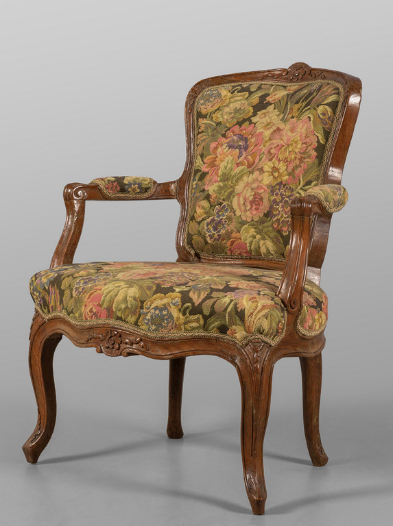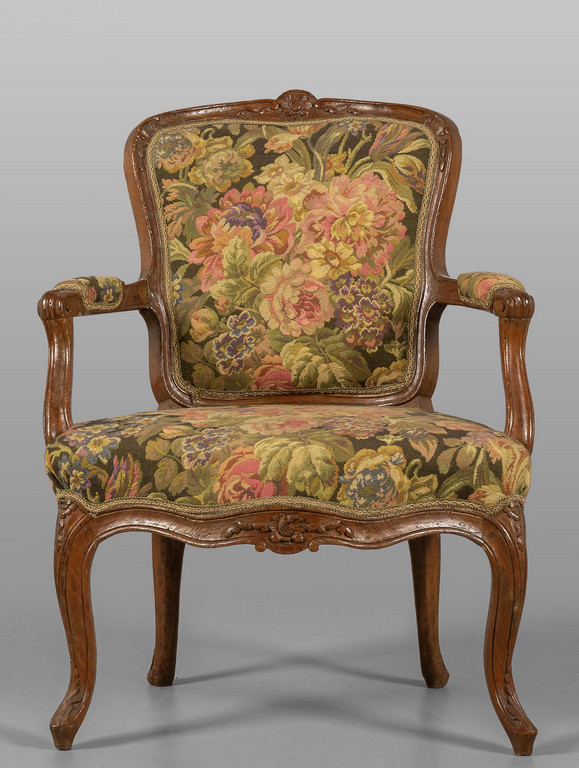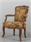 Poltrona Luigi XV in noce schienale e sedile con intaglio Genova sec.XVIII