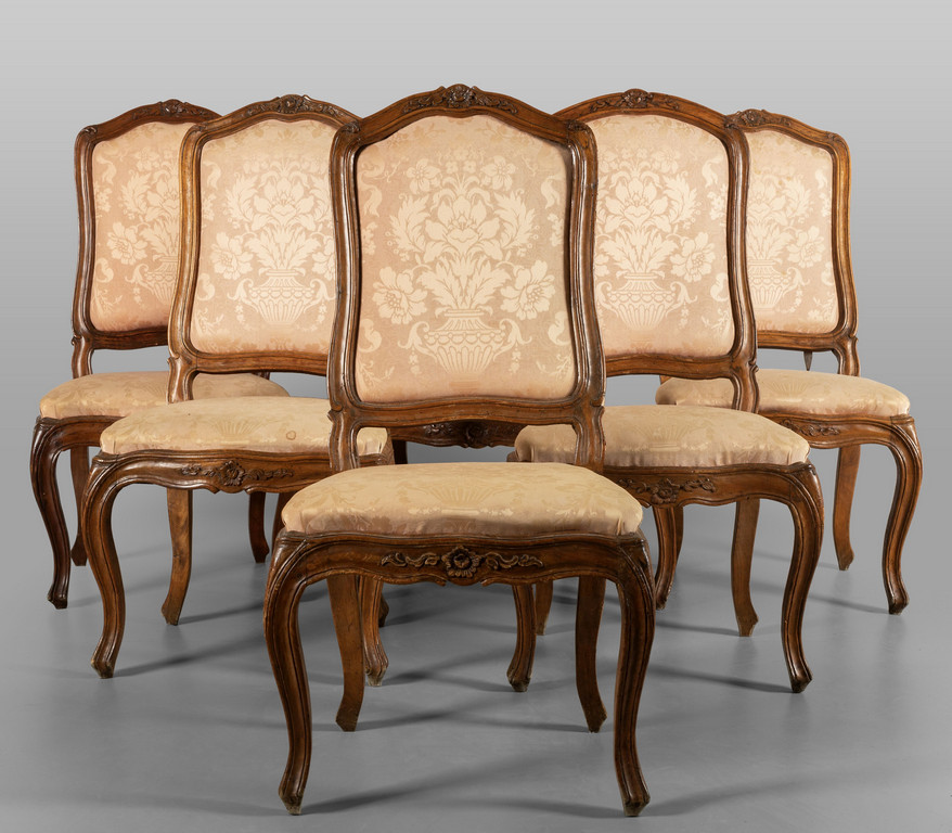 Quattro più due sedie Luigi XV in noce Genova metà sec.XVIII