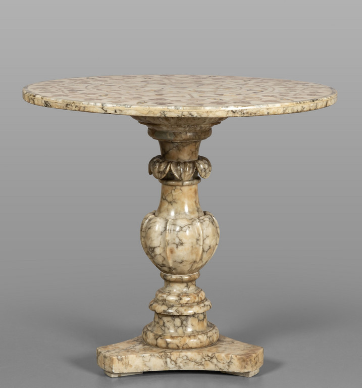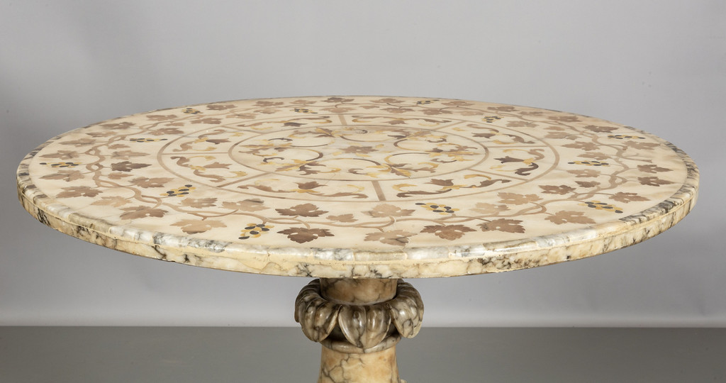 Tavolo rotondo in marmo con piano intarsiato sec.XIX
