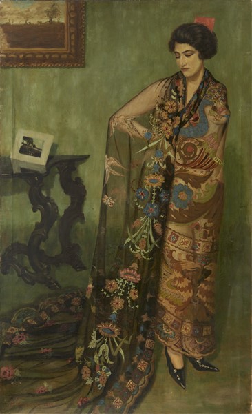 Annibale Scaroni "La veste orientale" 1924 olio su tela (cm 200x120) Firmato e d