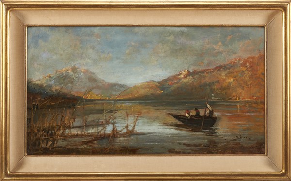 Lotto 94 | Emilio Borsa "Lago di Pusiano" olio su tavola (cm 33,5x62) Firmato in basso a d