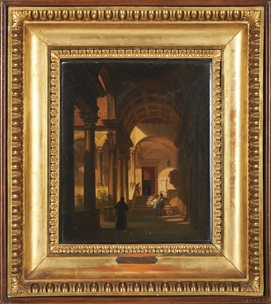 Giovanni Migliara "Chiostro" 1834 olio su tela (cm 28x23,5) Firmato in basso a d