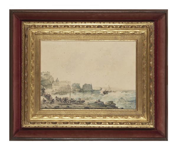 Giovanni Migliara "Veduta di Castel dell'Ovo a Napoli con mare in burrasca" acq