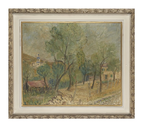 Adriano di Spilimbergo "Paesaggio" 1942 olio su carta incollata su tela (cm 55x6