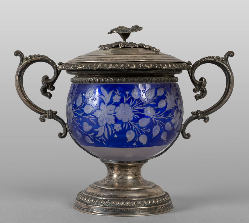 Zuccheriera Luigi Filippo in argento e vetro molato sec. XIX