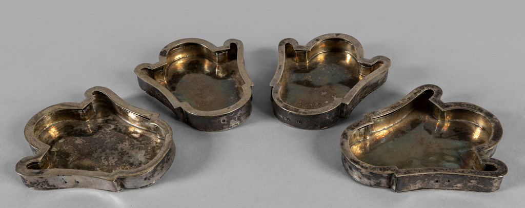 Precedente Lotto 1034 Successivo Aste Boetto - Via Mura dello Zerbino 10R, 16122 Genova ASTA DI ANTIQUARIATO Asta di Antiquariato giovedì 22 giugno 2023 ore 10:00 (UTC +01:00) OGGETTISTICA Quattro portareliquie in argento sec.XVIIIcm.10x11 gr.300