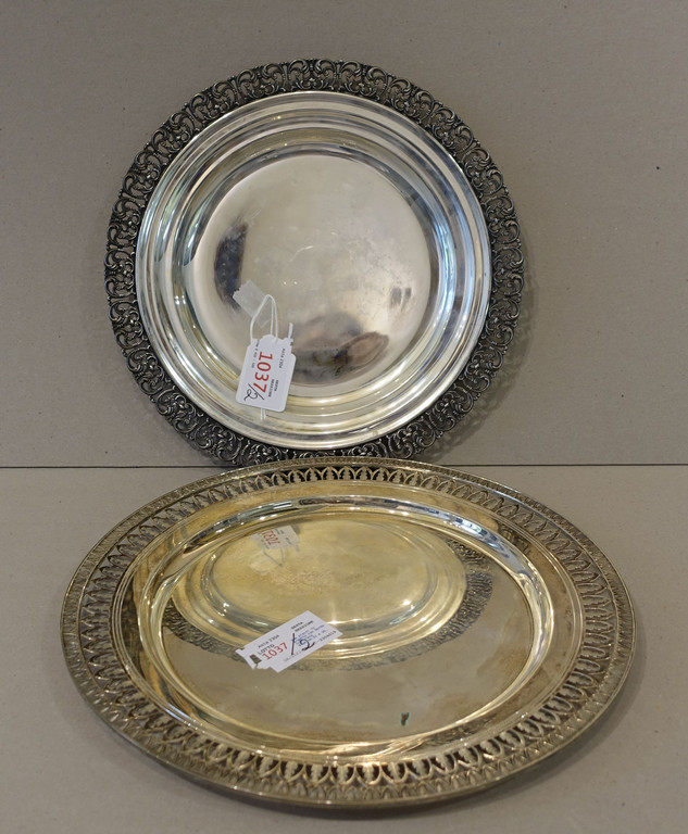 Precedente Lotto 1037 Successivo Aste Boetto - Via Mura dello Zerbino 10R, 16122 Genova ASTA DI ANTIQUARIATO Asta di Antiquariato giovedì 22 giugno 2023 ore 10:00 (UTC +01:00) OGGETTISTICA Due piatti in argento con bordo traforatodiam.cm.32 e 30 tot.gr.1260