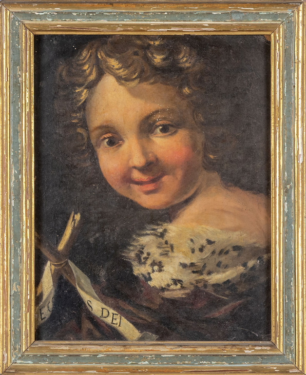 Scuola italiana sec.XIX 'San Giovannino' olio cornice coeva in legno laccato