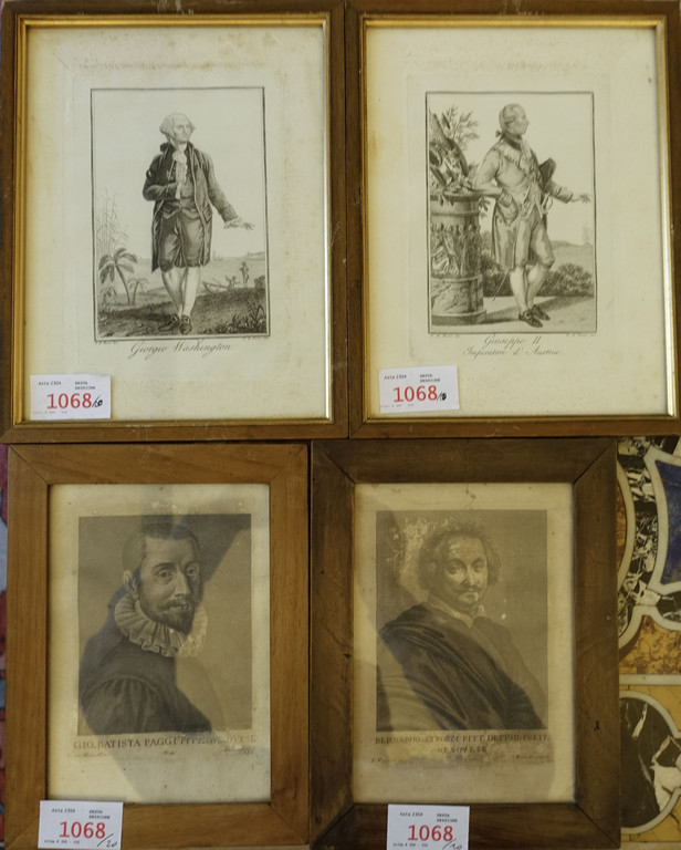 Precedente Lotto 1068 Successivo Aste Boetto - Via Mura dello Zerbino 10R, 16122 Genova ASTA DI ANTIQUARIATO Asta di Antiquariato giovedì 22 giugno 2023 ore 10:00 (UTC +01:00) STAMPA Venti stampe raffiguranti pittori e personaggi famosi sec.XVIII e XIX