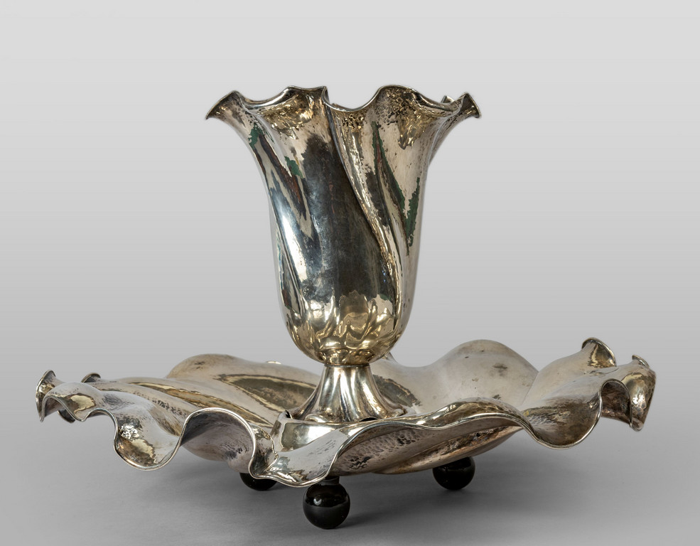 Precedente Lotto 1170 Successivo Aste Boetto - Via Mura dello Zerbino 10R, 16122 Genova ASTA DI ANTIQUARIATO Asta di Antiquariato giovedì 22 giugno 2023 ore 10:00 (UTC +01:00) OGGETTISTICA Centrotavola in argento con piedini in legno anni'40cm.46xh.31 gr.2300