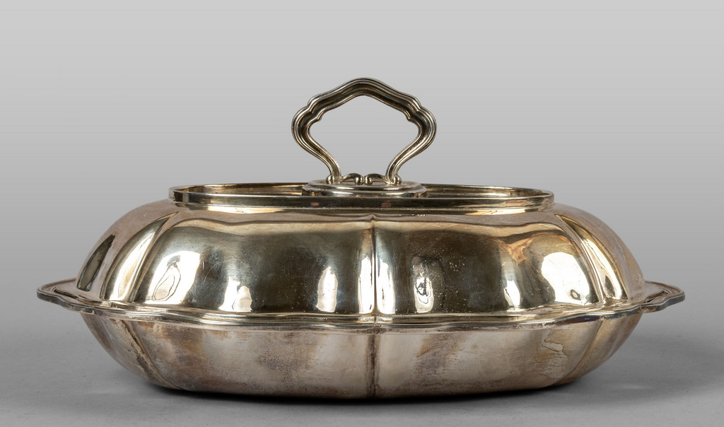 Precedente Lotto 1180 Successivo Aste Boetto - Via Mura dello Zerbino 10R, 16122 Genova ASTA DI ANTIQUARIATO Asta di Antiquariato giovedì 22 giugno 2023 ore 10:00 (UTC +01:00) OGGETTISTICA Legumiera in argentocm.29x19xh.14 gr.870