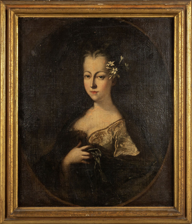 Scuola italiana sec.XVIII 'Ritratto di fanciulla con fiore tra i capelli' olio