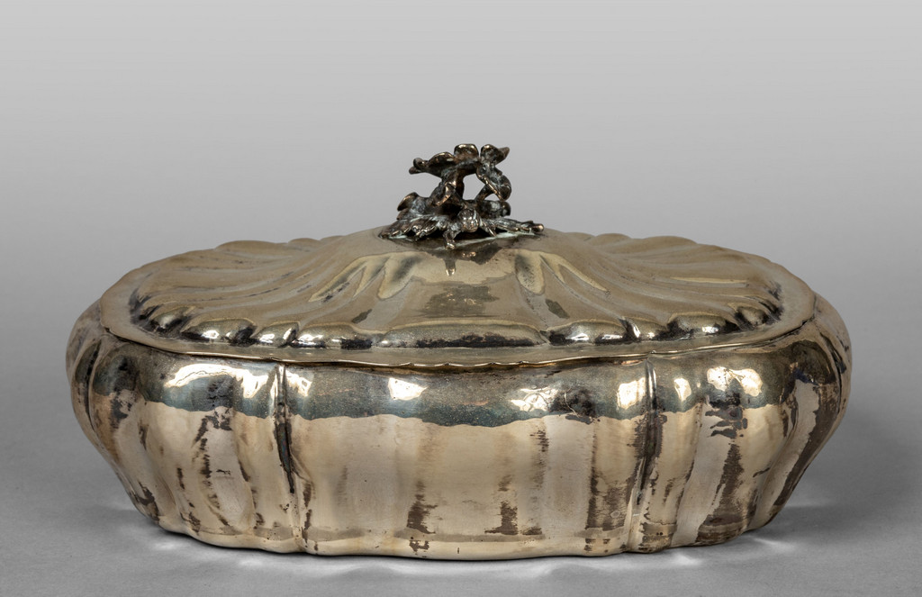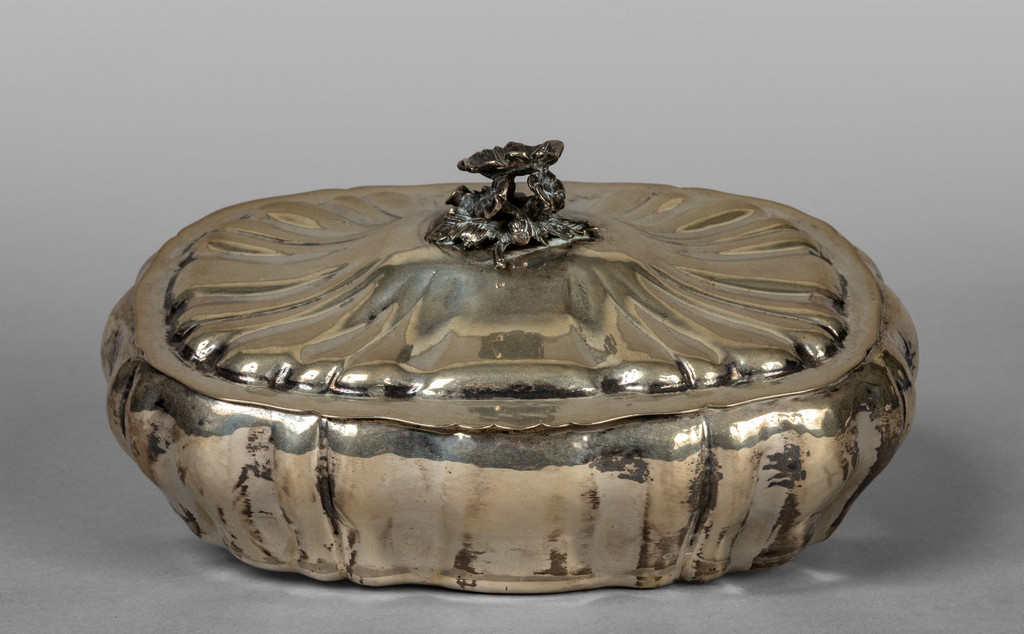 Precedente Lotto 1207 Successivo Aste Boetto - Via Mura dello Zerbino 10R, 16122 Genova ASTA DI ANTIQUARIATO Asta di Antiquariato giovedì 22 giugno 2023 ore 10:00 (UTC +01:00) OGGETTISTICA Scatola in argento con presa a forma di fiorecm.24x16xh.10 gr.696