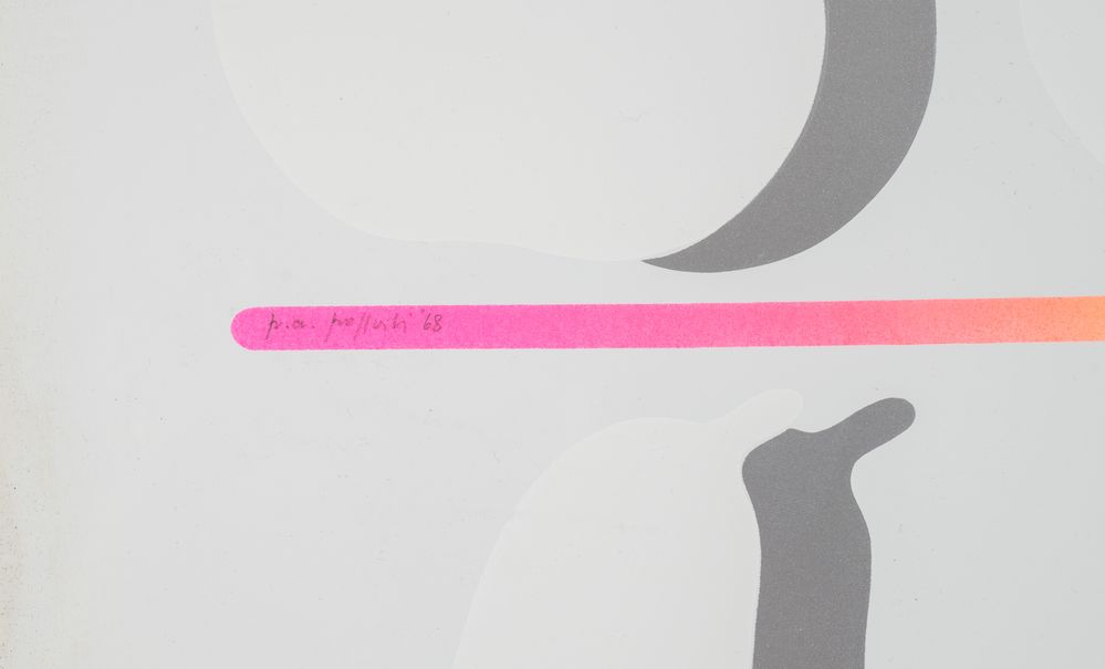 CONCETTO POZZATI (Vò di Padova 1935 – Bologna 2017) "Senza titolo", 1968. Litografia a colori su carta fotografica. Cm 50x70. Opera firmata e datata a sinistra Pozzati 68. Reca numeri di tiratura a sinistra P.A.