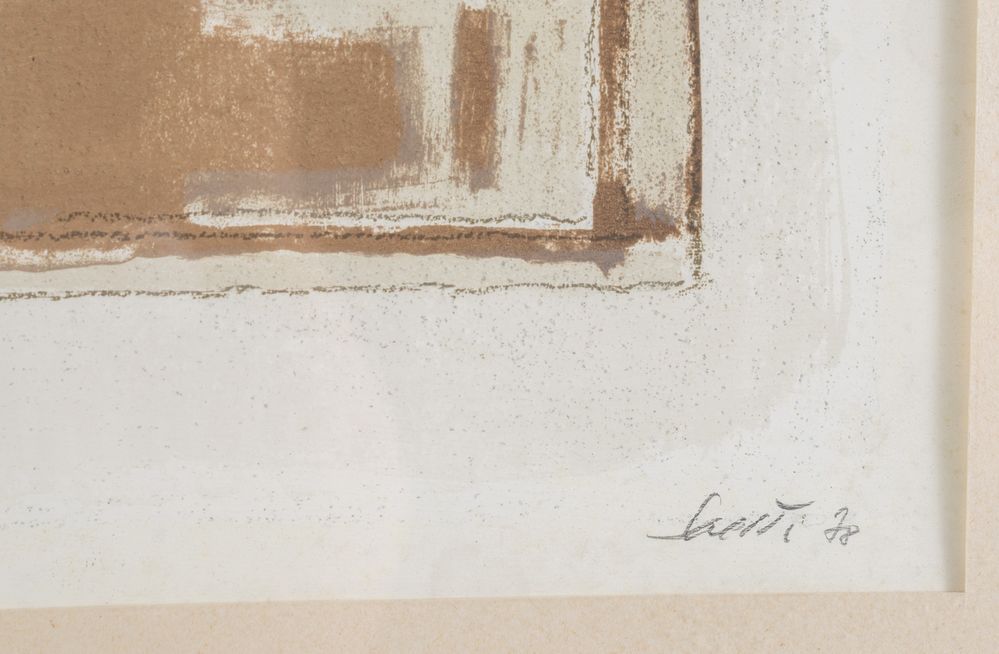 BRUNO SAETTI (Bologna 1902 – 1984) "Senza titolo". Litografia a colori su carta. Foglio: cm 49x70; lastra: cm 29x41. Opera firmata e datata Saetti '78. Reca numeri di tiratura in basso a sinistra 56/70.