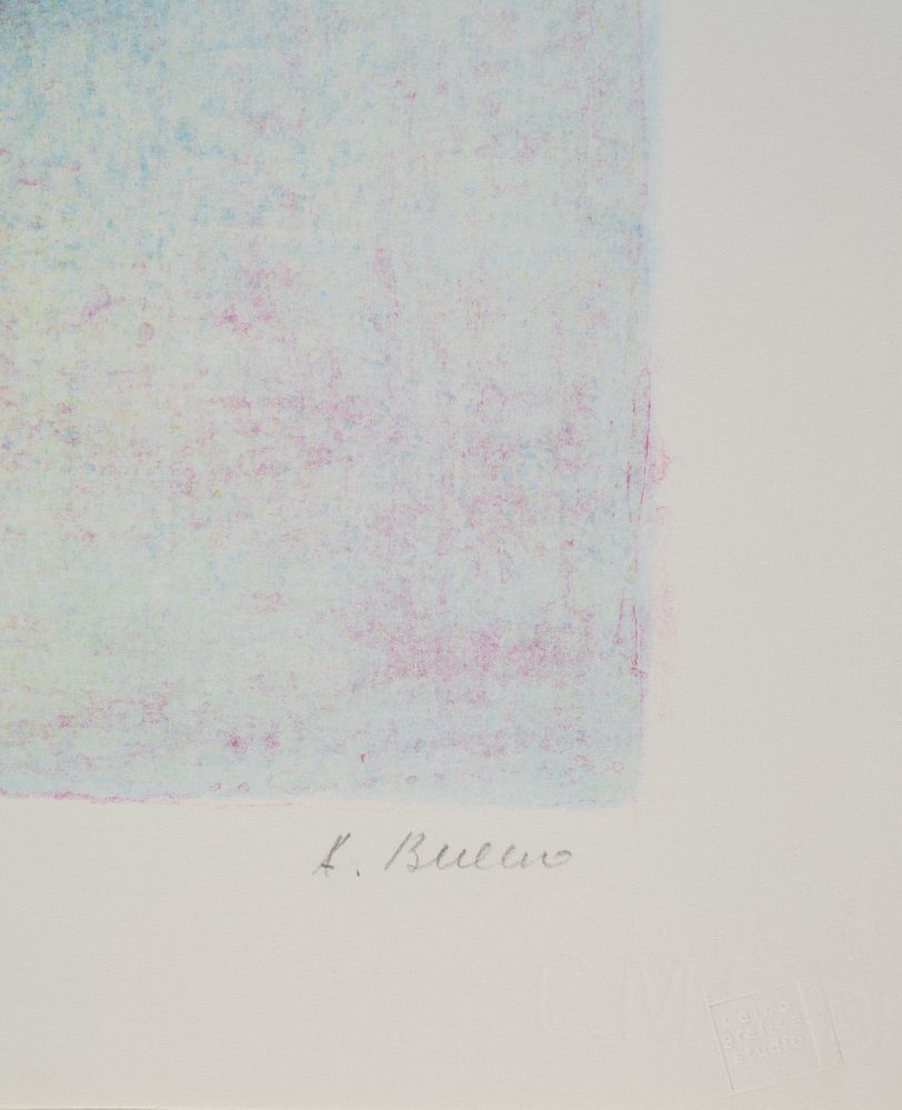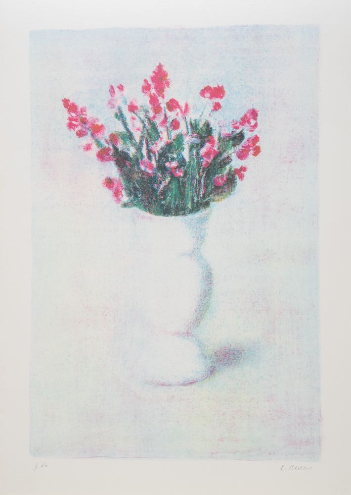 ANTONIO BUENO (Berlino 1918 – Fiesole 1984) "Vaso di Fiori". Litografia a colori su carta. Foglio: cm 70x50, lastra: cm 59,5x40. Opera firmata in basso a destra Bueno. Reca numeri di tiratura in basso a sinistra P.d.A. Reca timbro a secco in basso a destra Calcografica Arte.
