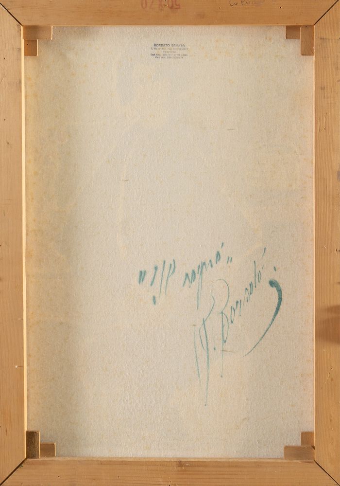 RENATO BORSATO (Venezia 1927 – 2013) "Il sogno". Olio su tela. Cm 70x50. Opera firmata in basso a destra Borsato. Al retro opera intitolata e firmata Il sogno, R. Borsato. Al retro reca timbro del pittore.