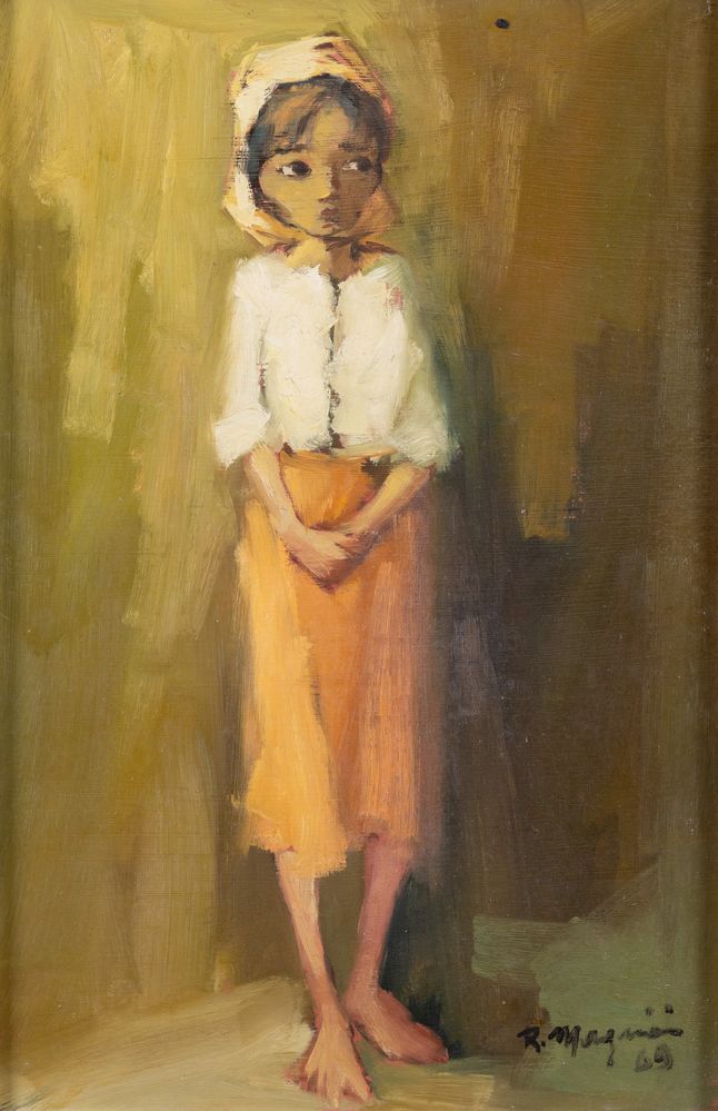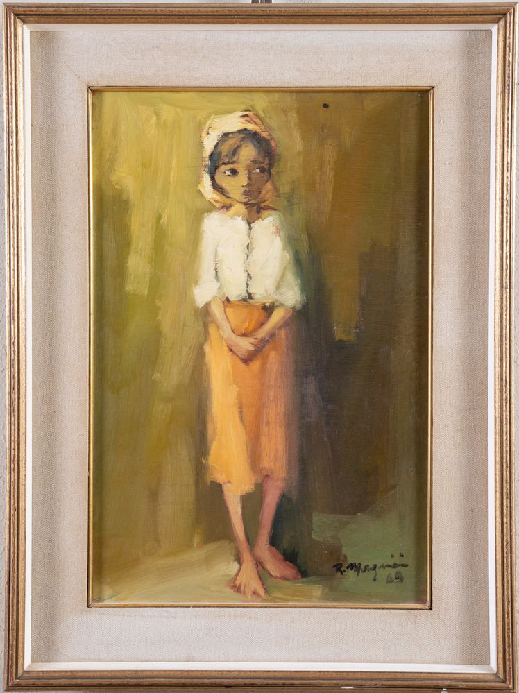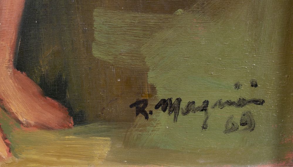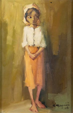 RENZO MAGNANINI (Gonzaga 1920 – Bentivoglio 2006) "Ritratto femminile", 1969. Olio su tela. Cm 45x29. Opera firmata e datata in basso a destra R. Magnanini '69.