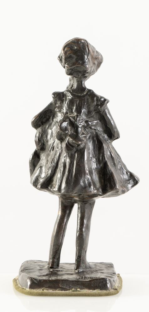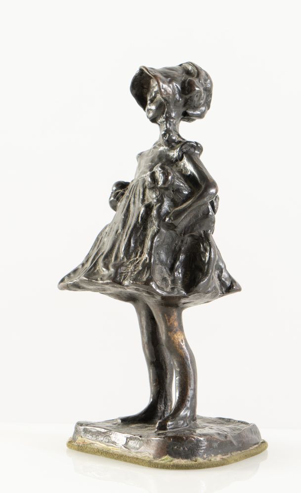 PAOLO TROUBETZKOY (Intra 1866 – Pallanza 1938) "Fillette". Scultura in bronzo. Cm 29x10x10. Opera firmata al retro della base P. Troubetzkoy.